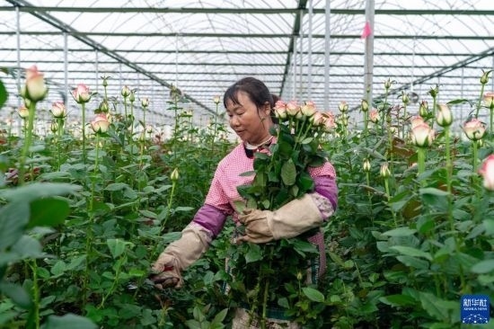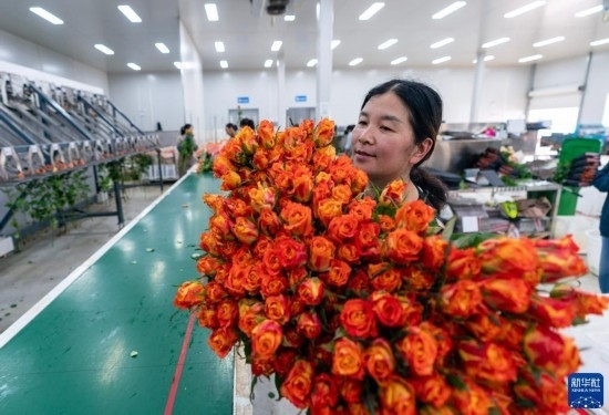 清晨,在云南省昆明市晉寧區(qū)云天化晉寧花卉產(chǎn)業(yè)現(xiàn)代化示范園內(nèi),品類各異的鮮花競相綻放,花農(nóng)們在現(xiàn)代化大棚里忙著采摘、搬運(yùn)。云天化晉寧花卉產(chǎn)業(yè)現(xiàn)代化示范園是集育苗、智能溫室大棚、水肥一體化、無土綠色栽培、全程數(shù)字化管理系統(tǒng),以及鮮切花采后處理、預(yù)冷儲藏等為一體的高標(biāo)準(zhǔn)設(shè)施農(nóng)業(yè)產(chǎn)業(yè)園區(qū),年產(chǎn)鮮切花1.6億枝。