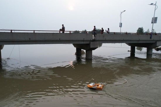 沿著蓄滯洪區(qū)前往天津靜海區(qū)臺(tái)頭鎮(zhèn)途中,記者遇到海委水文局水文應(yīng)急監(jiān)測(cè)小分隊(duì)隊(duì)長(zhǎng)韓朝光等人在大清河上測(cè)流作業(yè)。本次汛情中,海委水文局強(qiáng)化和加密水文測(cè)量,滾動(dòng)開展洪水預(yù)報(bào)。早在7月26日,他們便根據(jù)測(cè)報(bào)研判東淀蓄滯洪區(qū)存在較大啟用可能。他們通過二維水力學(xué)演算,預(yù)演洪水演進(jìn)及退水過程,為防汛決策提供技術(shù)支撐。