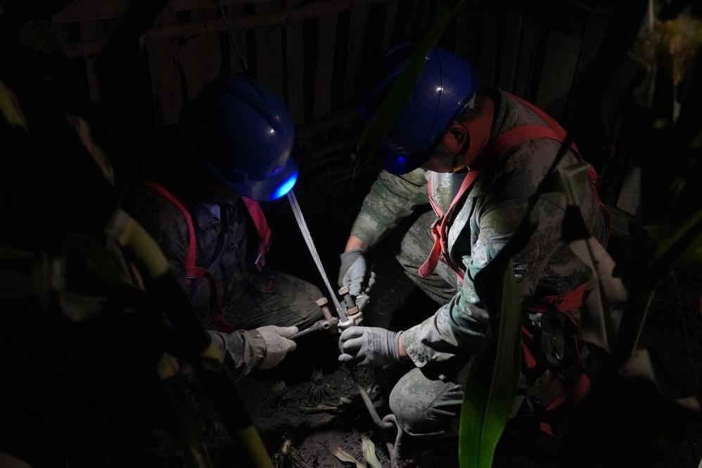 國網(wǎng)牡丹江供電公司電力搶修人員連夜進(jìn)行搶修。(受訪者供圖)
