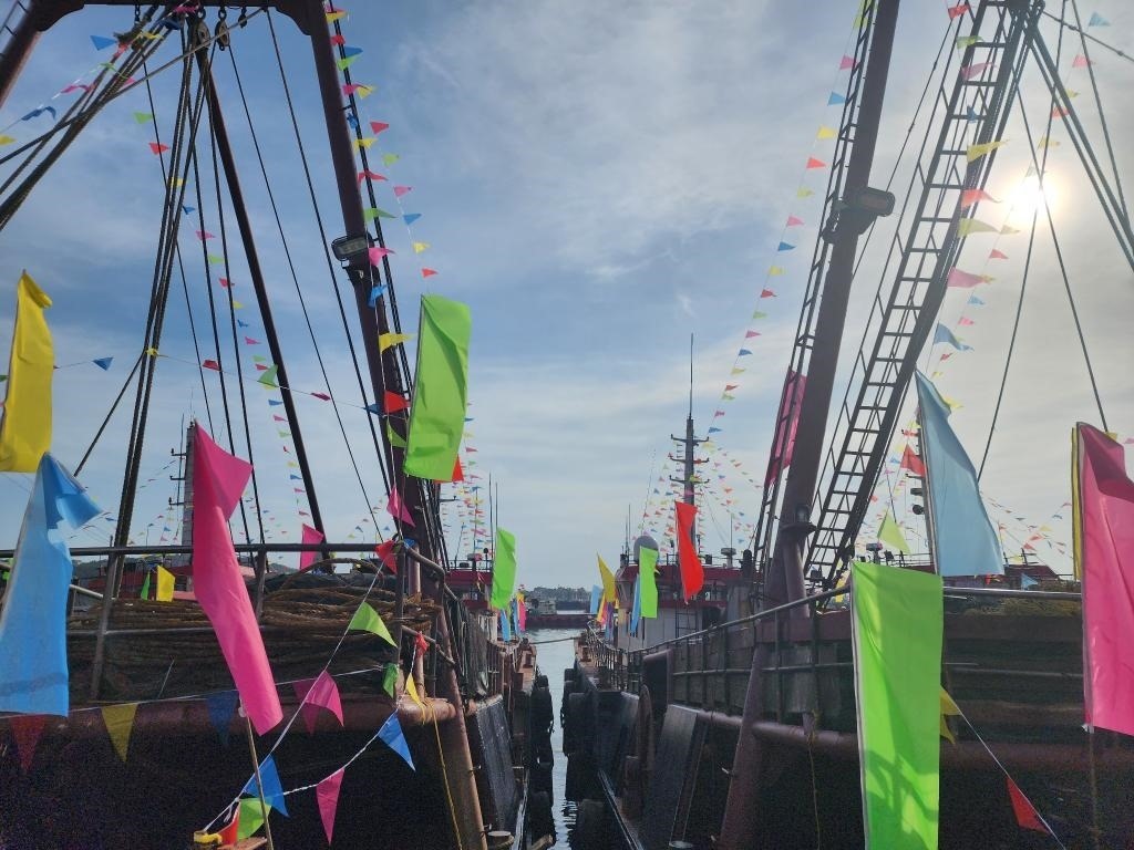 8月16日上午,溫潤的海風輕拂海面,一排排漁船??吭陂l坡港海灣,汽笛聲陣陣起伏。休息了三個半月的漁民鄭建華坐在船頭,正翹首以盼正午時分開漁號角的吹響。