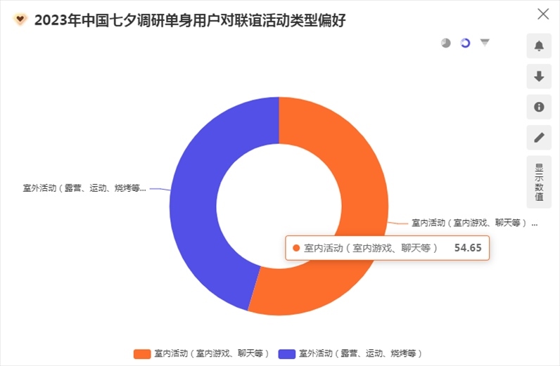 “單身經(jīng)濟(jì)與浪漫經(jīng)濟(jì)并不沖突。”張毅告訴記者,今年單身人士參加七夕節(jié)交友聯(lián)誼活動(dòng)意愿強(qiáng)烈,“有53.77%的表示會(huì)參加。在聯(lián)誼活動(dòng)的選擇上,54.65%的人會(huì)選擇劇本殺、密室逃脫、桌游等室內(nèi)活動(dòng)?!?/p>