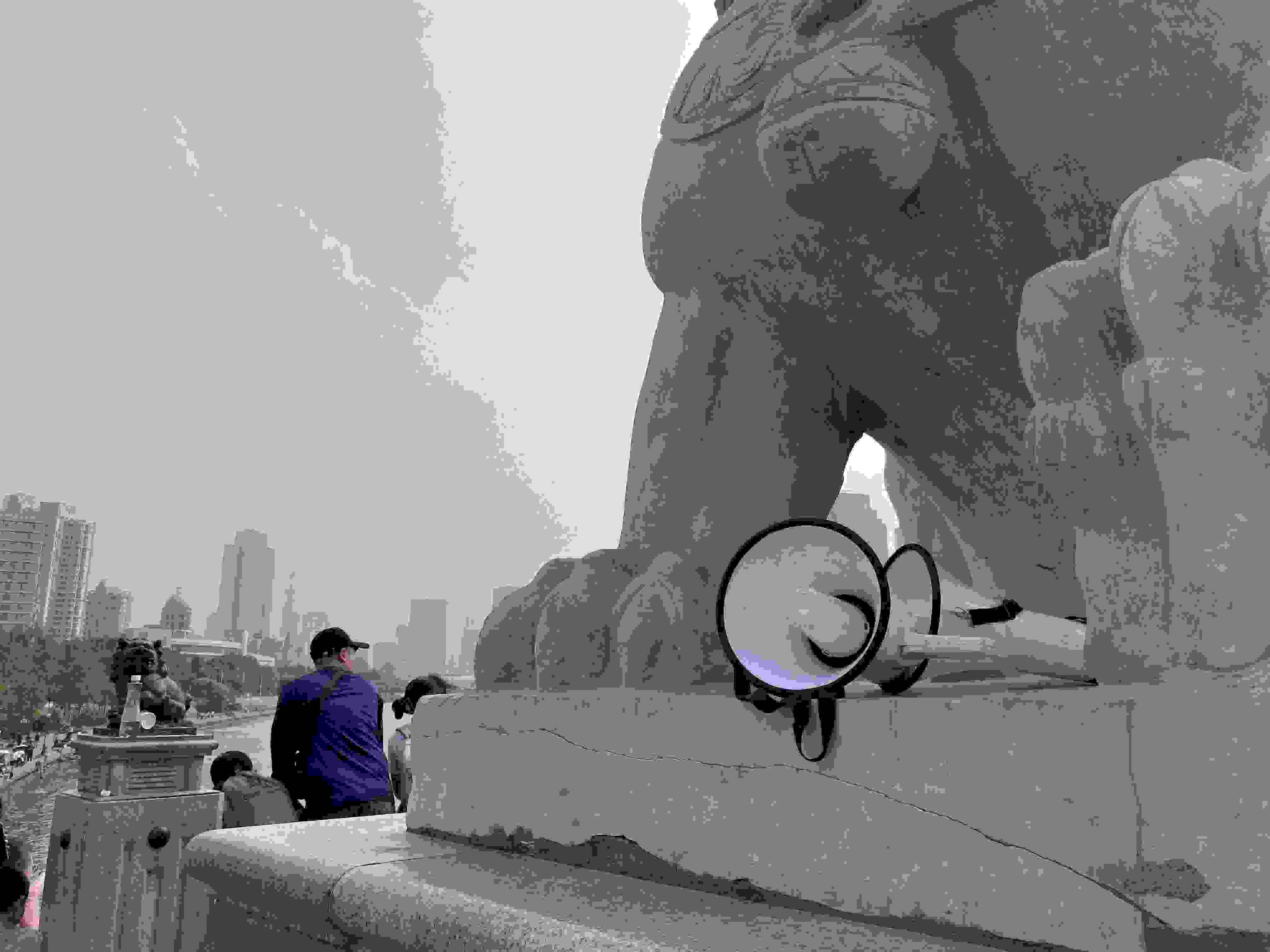 31日,雖然是工作日,但是在下午1點多,獅子林橋東側的岸邊和橋邊的人行道上,仍然站滿了圍觀的人。