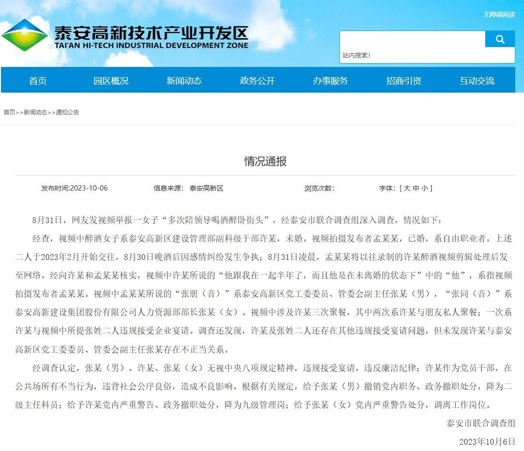 ·泰安通報(bào)“網(wǎng)傳女子陪領(lǐng)導(dǎo)喝酒醉臥街頭”:3人違規(guī)接受宴請(qǐng)被處分。