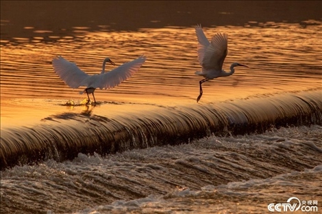 金秋時(shí)節(jié),山東淄博,桓臺(tái)縣勝利河水域,鷺舞翩躚。