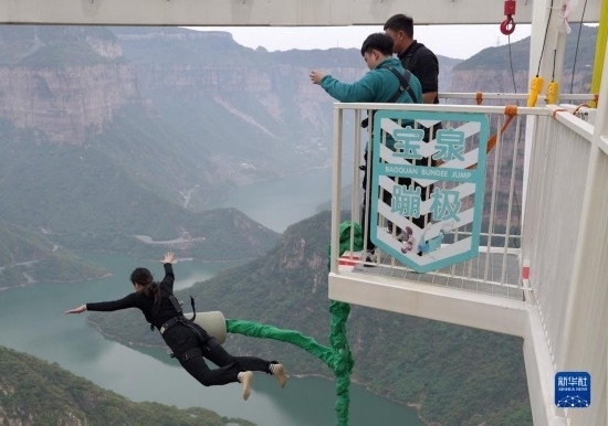 近年來(lái),河南省輝縣市依托南太行山優(yōu)質(zhì)旅游資源,積極探索沉浸式文旅新模式,打造以“崖”為主題的景區(qū),建成投運(yùn)了“空中巴士”、蹦極等懸崖文旅項(xiàng)目,讓廣大游客沉浸式游覽在懸崖峭壁之中。