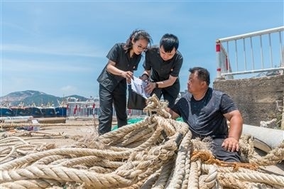 圖⑤:溫嶺市人民法院石陳人民法庭執(zhí)行干警向漁民詢問(wèn)被執(zhí)行人信息。資料圖片