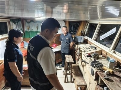 圖③:路橋區(qū)法院執(zhí)行干警赴太湖水域扣押涉案船只。