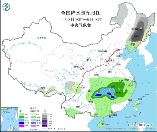 中新網(wǎng)11月8日電 據(jù)中央氣象臺網(wǎng)站消息,預計8日至9日,黑龍江中南部、吉林中西部、遼寧北部等地有暴雪和低溫冰凍災害風險,關注對交通運輸、建筑設施安全、農牧業(yè)、電力通信等的影響;湖南、江西、浙江、福建等地降雨較強,注意防范次生災害。