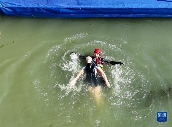 11月8日,消防員在南京玄武湖參加水域救援比賽(無人機照片)。