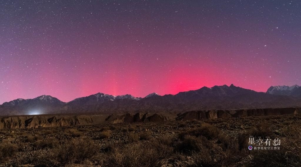 新疆星空攝影愛好者楊靂鵬2023年11月6日凌晨在新疆烏魯木齊達(dá)坂城拍攝的極光現(xiàn)象。(本人供圖)
