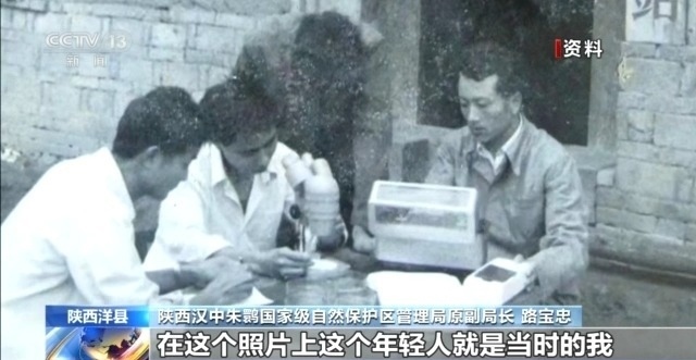 陜西漢中朱鹮國(guó)家級(jí)自然保護(hù)區(qū)管理局原副局長(zhǎng) 路寶忠:這個(gè)照片上這個(gè)年輕人就是當(dāng)時(shí)的我。我們4人小組要在野外去觀察朱鹮,帶上望遠(yuǎn)鏡,帶上海拔儀,然后掌握朱鹮的一些活動(dòng)規(guī)律。它在什么地方活動(dòng),這個(gè)地方海拔高度有多高,然后我們要做好觀察記錄。
