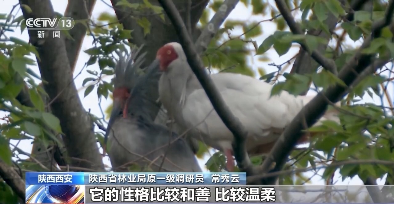 陜西省林業(yè)局原一級(jí)調(diào)研員 常秀云:它的性格比較和善,比較溫柔。它不像那些猛禽,哪怕蒼鷺和白鷺都比它要強(qiáng)壯,但是朱鹮不到萬(wàn)不得已的時(shí)候,它是不會(huì)向人發(fā)出攻擊,或者向同伴鳥類發(fā)出攻擊的。所以它是一種比較溫文爾雅的鳥類。