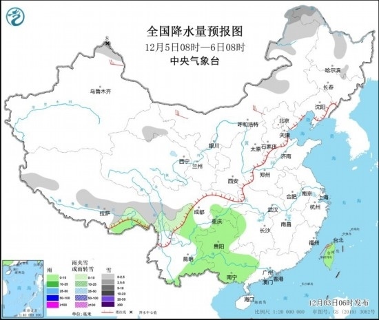 全國降水量預(yù)報圖(12月5日08時-6日08時)