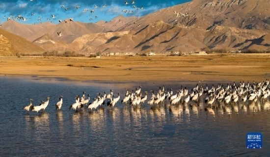西藏拉薩市林周縣位于拉薩河上游及澎波河流域,平均海拔約4200米,是黑頸鶴的主要越冬地之一。