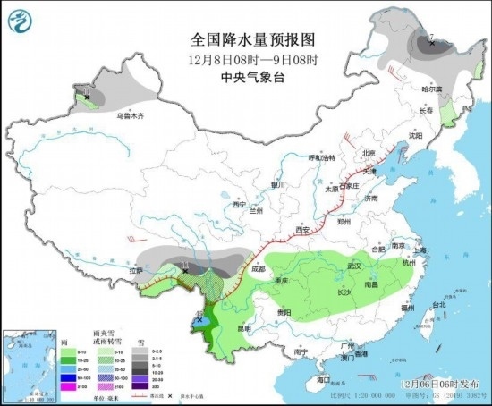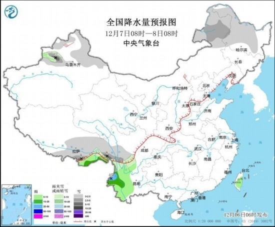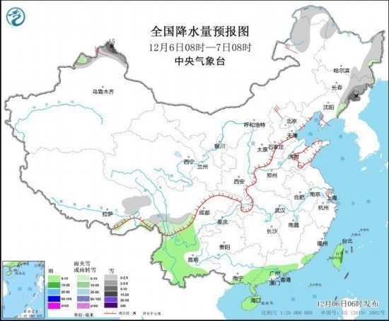 全國降水量預(yù)報(bào)圖(12月6日08時-7日08時)
