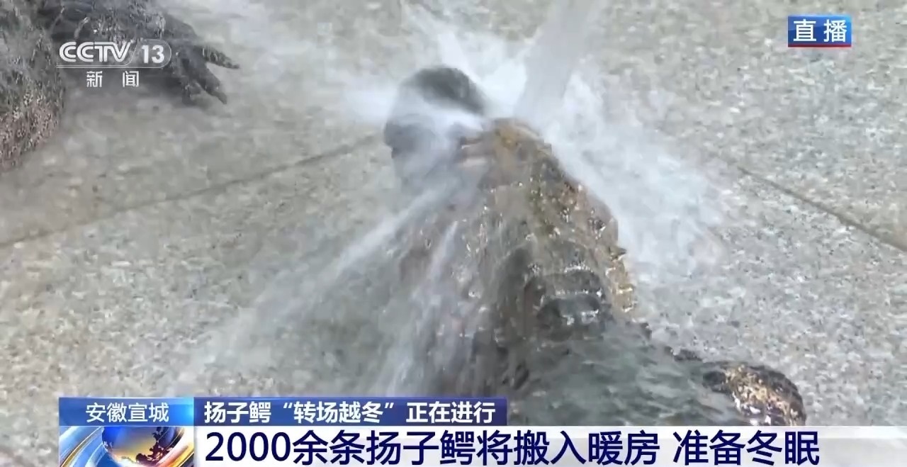 由于今年的溫度比較高,與往年相比,轉(zhuǎn)場越冬推遲了十天左右。轉(zhuǎn)場是按照從小到大的順序。今天是第一天,率先搬家的主要是7歲以下的幼鱷,它們對環(huán)境的適應(yīng)能力更弱一些,需要盡快搬進(jìn)室內(nèi)。在搬進(jìn)暖房之前,揚(yáng)子鱷需要先進(jìn)行沖洗、消毒?!鞍布摇焙螅蕉康臏囟葧?huì)保持在10℃左右,并且有工作人員定期打掃、保濕,確保揚(yáng)子鱷安全過冬。