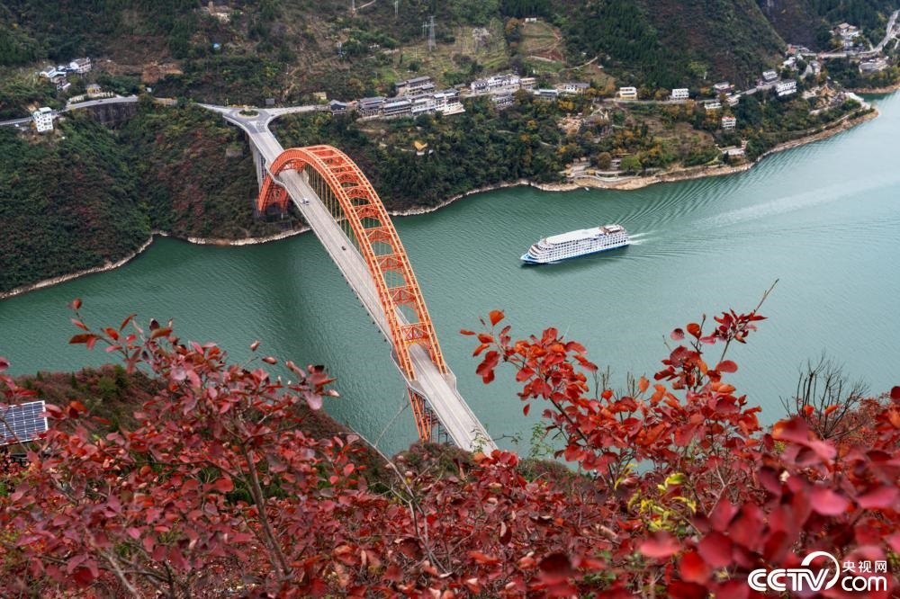 初冬時節(jié),長江三峽重慶市巫山縣水域兩岸色彩斑斕,紅葉正艷,美如畫卷。