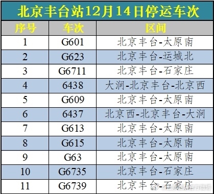 央視網(wǎng)消息:受降雪影響,12月14日北京西站、北京豐臺(tái)站部分列車(chē)臨時(shí)停運(yùn),已購(gòu)買(mǎi)停運(yùn)列車(chē)車(chē)票的旅客,可于30日內(nèi)辦理全額退票手續(xù)。請(qǐng)廣大旅客合理安排出行,關(guān)注車(chē)站公告或12306網(wǎng)站信息。