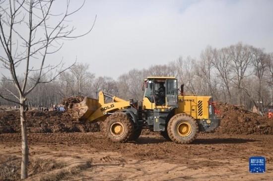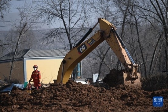 12月19日,救援機械在青海省海東市民和回族土族自治縣中川鄉(xiāng)金田村清理地震引發(fā)的砂涌。