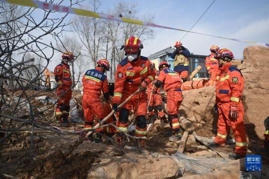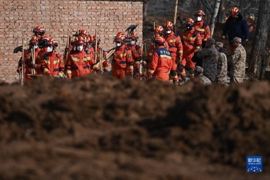 12月19日,救援機械和人員在青海省海東市民和回族土族自治縣中川鄉(xiāng)金田村清理地震引發(fā)的砂涌。