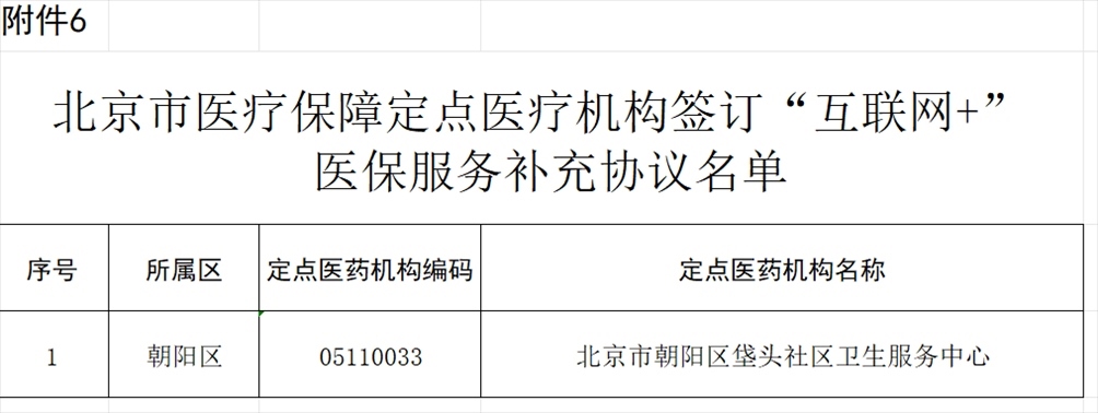 北京市朝陽區(qū)垡頭社區(qū)衛(wèi)生服務(wù)中心申請(qǐng)開展“互聯(lián)網(wǎng)+”醫(yī)保服務(wù),經(jīng)市、區(qū)醫(yī)保經(jīng)辦機(jī)構(gòu)審核并通過信息系統(tǒng)業(yè)務(wù)驗(yàn)收,該定點(diǎn)醫(yī)療機(jī)構(gòu)符合“互聯(lián)網(wǎng)+”醫(yī)保服務(wù)條件,簽訂《<北京市基本醫(yī)療保險(xiǎn)定點(diǎn)醫(yī)療機(jī)構(gòu)服務(wù)協(xié)議書>“互聯(lián)網(wǎng)+”醫(yī)保服務(wù)補(bǔ)充協(xié)議》,為參保人員提供北京市醫(yī)療保障“互聯(lián)網(wǎng)+”醫(yī)保服務(wù)(見附件6)。
