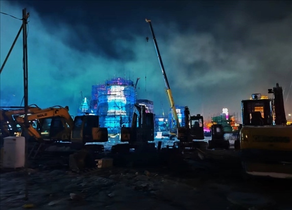 夜間的冰雪大世界園區(qū)施工現(xiàn)場(chǎng)。圖源:受訪(fǎng)者供圖