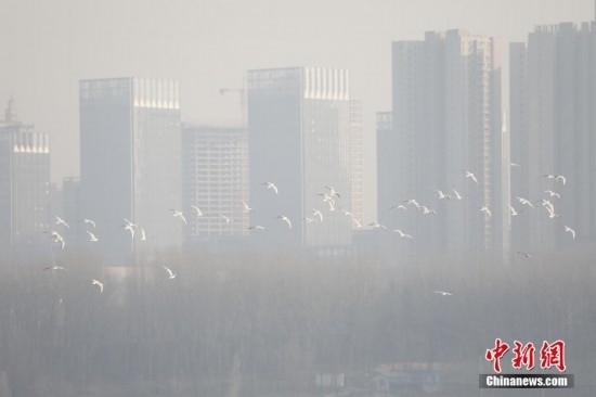 1月11日,河南三門(mén)峽,來(lái)自蒙古國(guó)和西伯利亞的數(shù)千只大天鵝前來(lái)越冬。如今,當(dāng)?shù)貞{借適宜的氣候和優(yōu)良的生態(tài)環(huán)境,成為中國(guó)境內(nèi)大天鵝棲息越冬的主要目的地之一。圖為一群天鵝飛過(guò)三門(mén)峽城市上空。