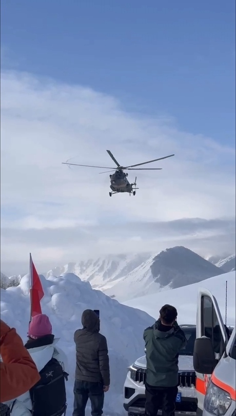 1月14日上午,新疆軍區(qū)某陸航旅任務(wù)機(jī)組裝載燃油、發(fā)電機(jī)、米面油等物資,和部分救援人員一起飛赴阿勒泰地區(qū)喀納斯點(diǎn)位進(jìn)行投送。到達(dá)點(diǎn)位后,工作人員迅速卸載物資,部分因暴雪天氣被困的群眾登機(jī),由喀納斯游客中心轉(zhuǎn)運(yùn)至喀納斯機(jī)場(chǎng)。