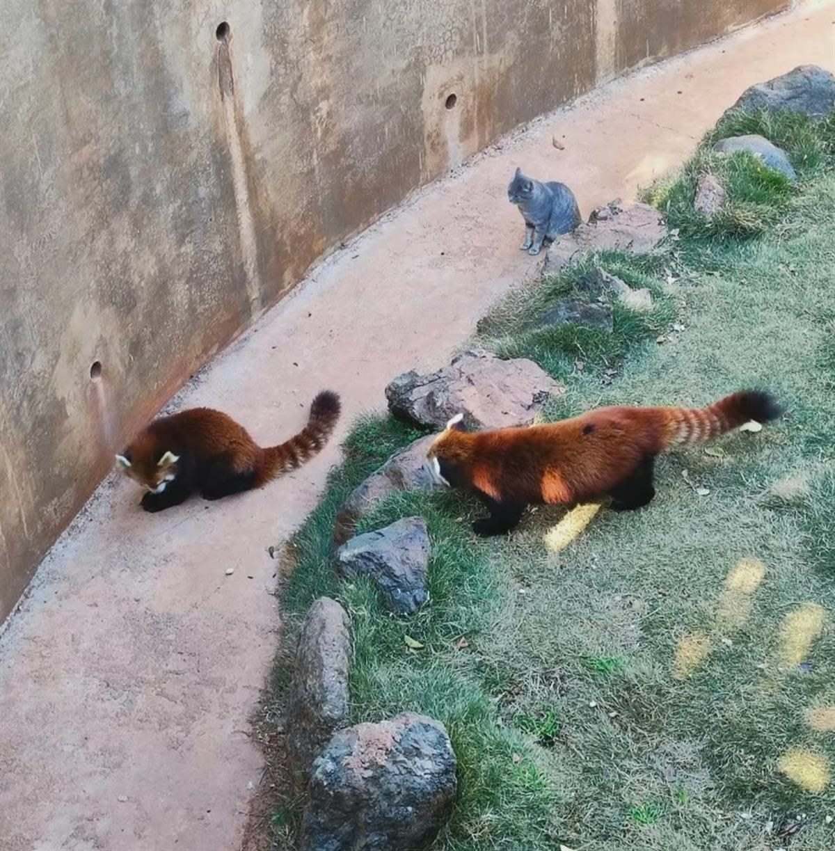 對此,有網(wǎng)友調(diào)侃稱,“莫非小貓咪替小熊貓在頂崗?”“這不是貍貓換太子嗎?”不過,也有很多網(wǎng)友表示,這里是大理洱海公園的動物園區(qū),小熊貓園內(nèi)養(yǎng)了兩只小熊貓,它們和這只貓咪和諧相處很久了,只是小熊貓經(jīng)常爬到樹上去玩,可能沒有貓咪那么顯眼。