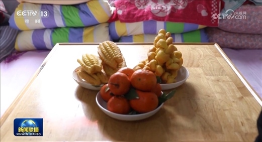地震之后,馬興權(quán)一家六口人就住進(jìn)了這里的板房。一進(jìn)門,記者就看到,他家過年吃的米、面、油都備齊了,當(dāng)?shù)靥厣穆榛ê陀凸右舱ê昧?。馬興權(quán)說,前幾天,政府還為大家發(fā)放了生活物資和慰問金。