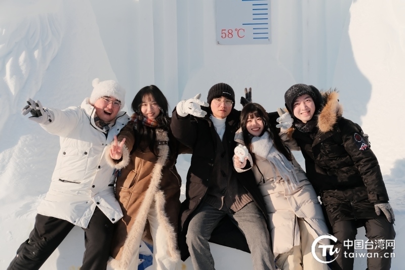 1月26日,2024年全國(guó)臺(tái)聯(lián)第三十屆臺(tái)胞青年冬令營(yíng)內(nèi)蒙古分營(yíng)一行人前往呼倫貝爾市根河市冷極村,右二為陳紀(jì)陵。(臺(tái)灣同學(xué) 王奕勛 攝)