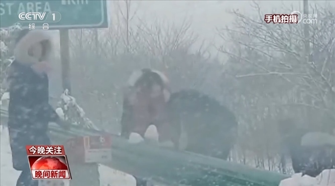 同樣的故事,在一條條受雨雪冰凍天氣影響的回家路上接連上演。在湖北仙桃,滬渝高速三伏潭段的積雪結(jié)冰嚴(yán)重。不少過(guò)往車輛滯留在高速公路沿線。當(dāng)?shù)卮迕褚沧园l(fā)地為滯留群眾提供各種幫助。