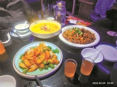 幾個小時前,他們剛剛在酒店的中餐廳享用了年夜飯,菜單包括:青檸氣泡蝦、蟹粉八珍手工面筋、藿香江團(tuán)、松露水晶等,一共9道特色菜。