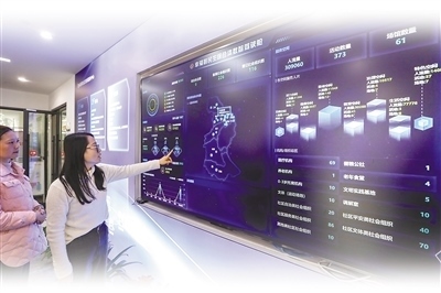古蕩街道民生綜合體內,市民使用智慧屏查看民生綜合體相關情況。本報記者 江 南攝