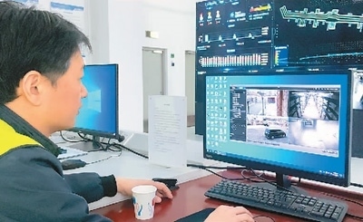 張軍磊在監(jiān)控室進(jìn)行視頻巡檢。本報記者 吳雪聰攝