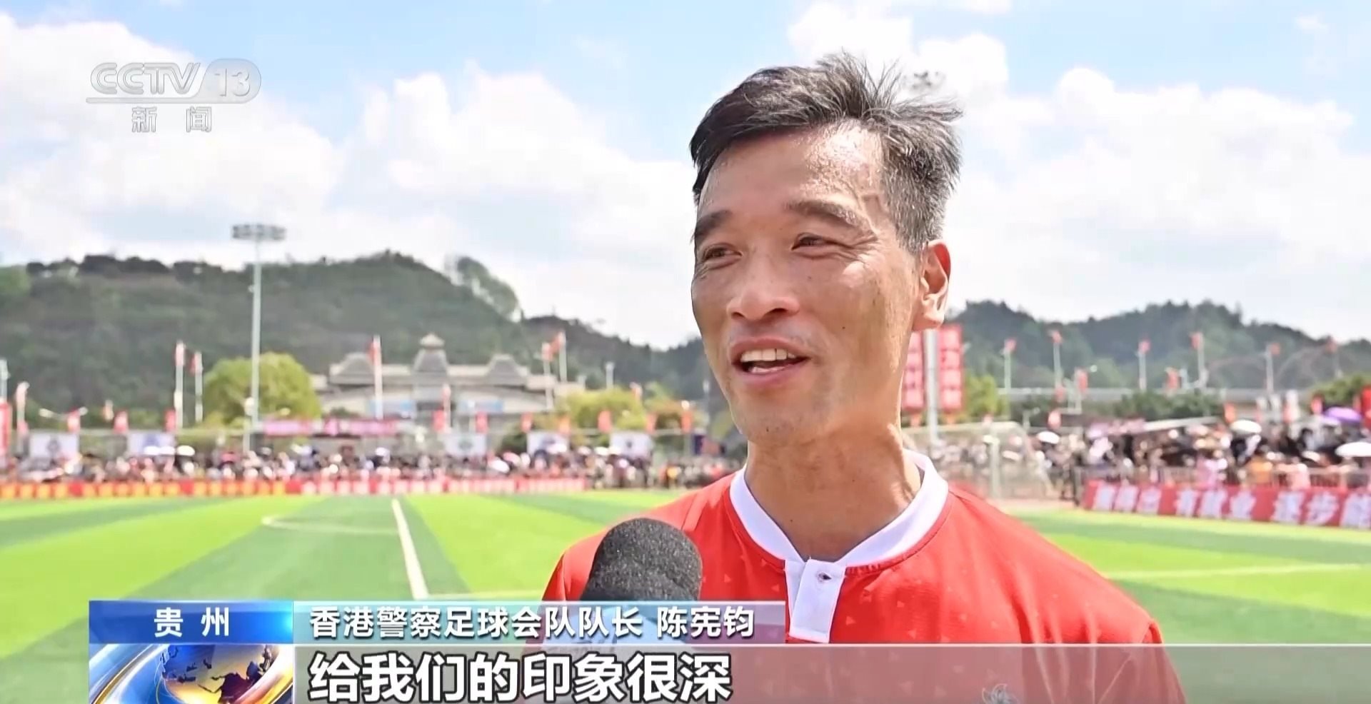 香港警察足球會(huì)隊(duì)隊(duì)長(zhǎng) 陳憲鈞:這是我們第一次來貴州,給我們的印象很深,人們都很熱情,我們很開心來到這里,因?yàn)樵谙愀畚覀円部催^“村超”的現(xiàn)場(chǎng),所以我們有機(jī)會(huì)來到這里,跟大家一起踢(足球),我覺得非常開心。我們希望可以跟尤其是年輕人多交流,讓他們認(rèn)識(shí)我們香港警隊(duì)。