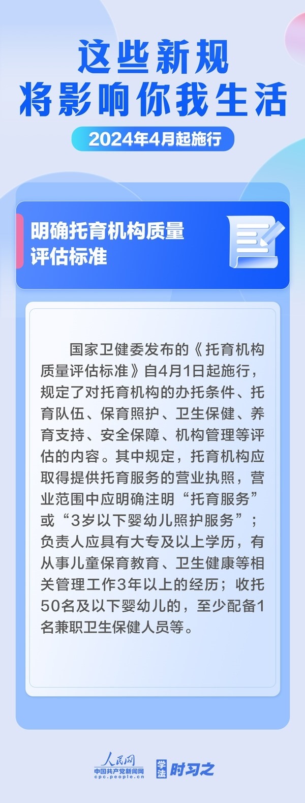 加強中央儲備棉管理;明確托育機構質量評估標準;規(guī)范可再生能源電量收購……4月起,這些新規(guī)施行,將影響你我生活。