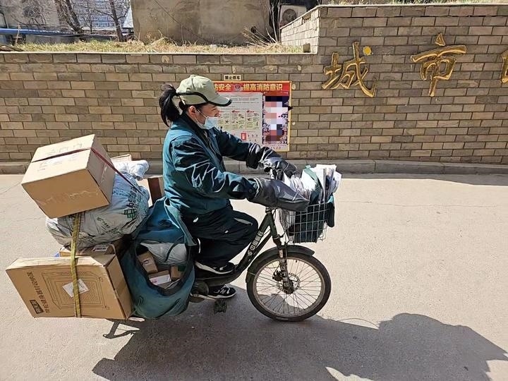4月8日,沈陽一名快遞員在小區(qū)內(nèi)送件。新華社記者 于也童 攝
