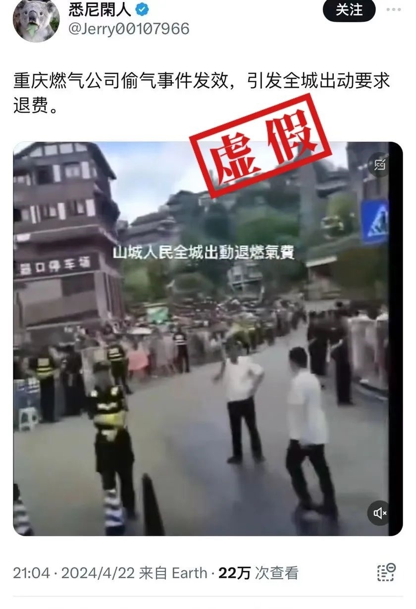 近期,海外社交平臺有網(wǎng)友上傳一則視頻并聲稱畫面為“重慶全城出動要求退燃?xì)赓M”,然而該視頻存在諸多疑點,似乎并非網(wǎng)傳所述場景。