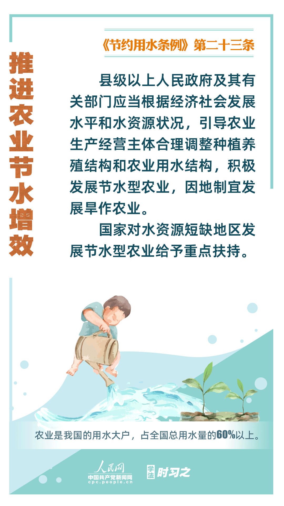 《節(jié)約用水條例》(以下簡(jiǎn)稱《條例》)將于2024年5月1日起施行,這是我國首部節(jié)約用水行政法規(guī)。節(jié)約用水,是解決我國水資源短缺問題的根本措施,《條例》以水資源可持續(xù)利用為目標(biāo),建立健全節(jié)水制度政策體系,以法治方式和法治途徑實(shí)現(xiàn)水資源節(jié)約集約高效利用,促進(jìn)全社會(huì)節(jié)約用水。