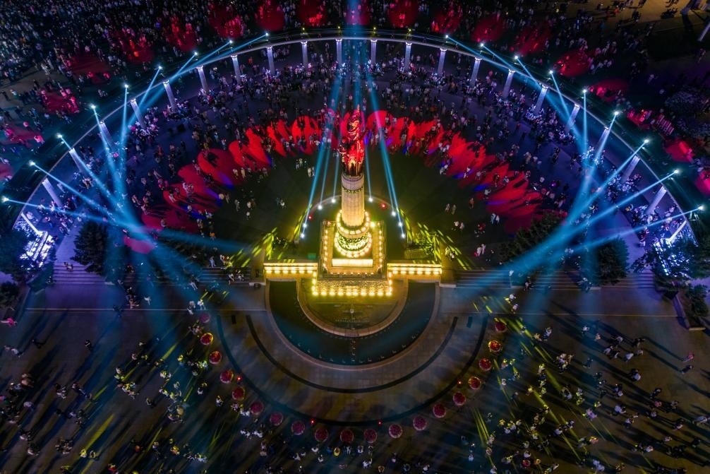 夜幕降臨,哈爾濱防洪勝利紀(jì)念塔廣場格外絢麗,萬眾期待的松花江光影秀準(zhǔn)時(shí)上演。聲、光、電交織舞動(dòng),以防洪紀(jì)念塔為中心,隔江呼應(yīng)著太陽島,每一次光影的變化都映射出這座城市獨(dú)特的文化意象。
