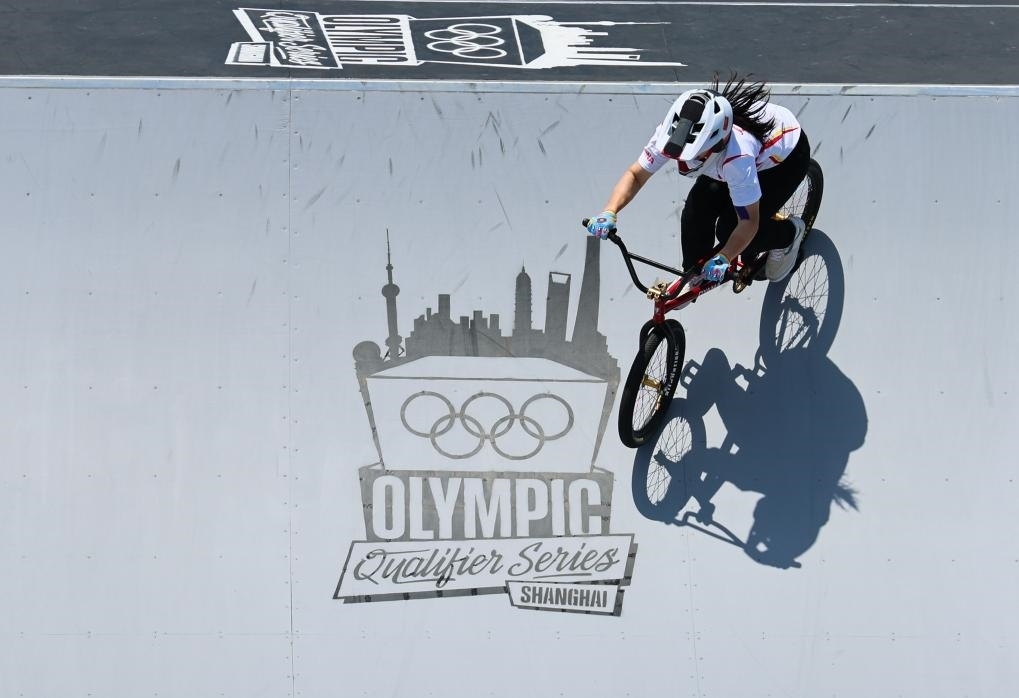 5月18日,在上海舉行的巴黎奧運(yùn)會(huì)資格系列賽上海站小輪車自由式女子公園賽決賽中,中國選手孫思蓓以95.86分的成績獲得冠軍。新華社記者 許雅楠 攝
