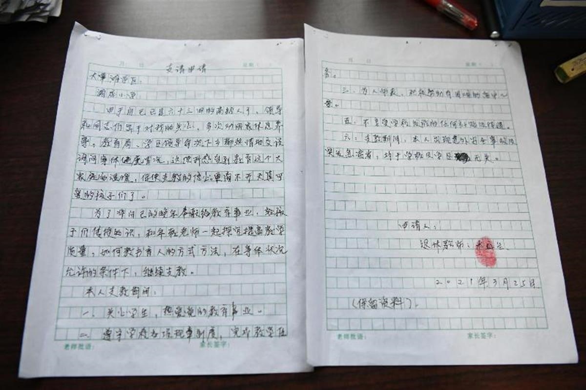 本科生的退休返崗申請(qǐng)書(圖片來源:新甘肅)