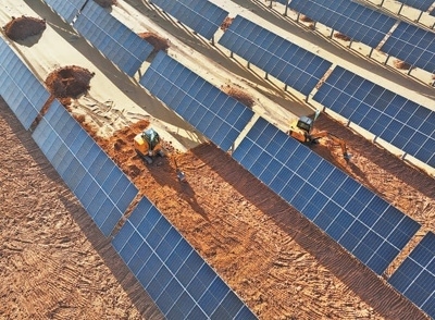 “沙漠地勢(shì)起伏不定,我們需要平整場(chǎng)地,方便光伏板的安裝?!蓖鮼啳偢嬖V記者,“在不久的將來,這片漫漫沙海將變身為一片深藍(lán)色的‘光伏海洋’。”