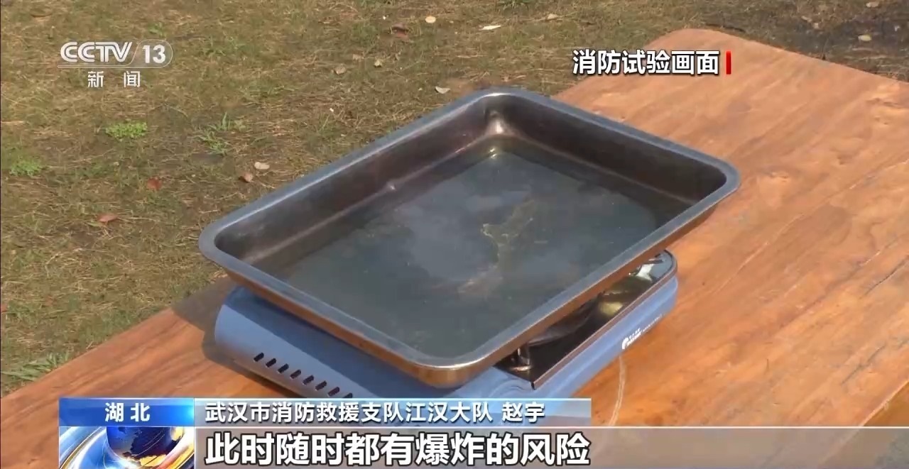 剛才我們看到的兩起事故都是卡式爐爆炸引起的。卡式爐是以瓶裝丁烷氣為主要燃料,用火進(jìn)行直接加熱的非固定式烹飪廚具。在露營中,很多人選擇攜帶卡式爐進(jìn)行烹飪,那么,什么情況下卡式爐可能會發(fā)生爆炸?使用過程中要注意哪些問題?消防人員通過試驗(yàn)來給我們做了演示和講解。