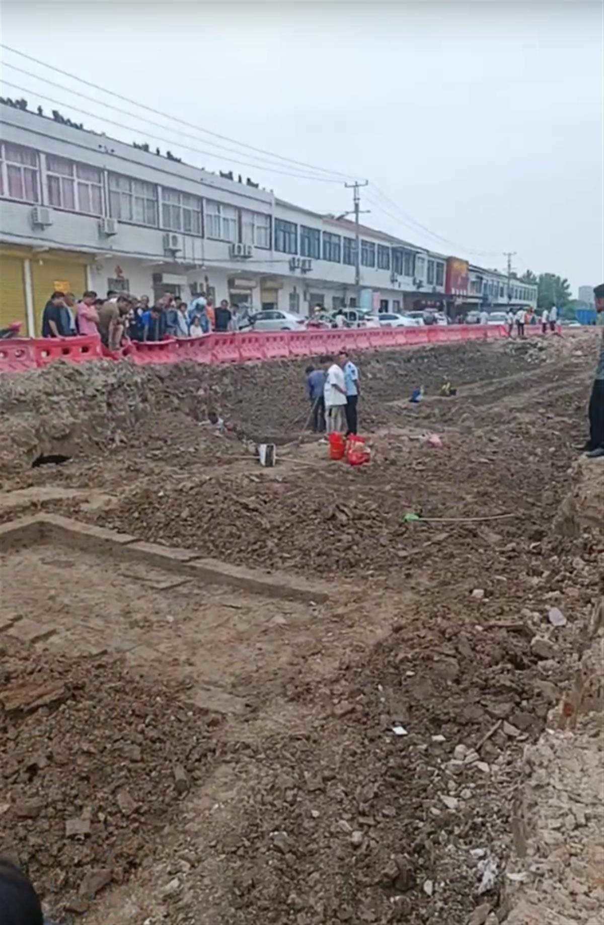 網(wǎng)友發(fā)布的視頻顯示,在壽縣炎劉鎮(zhèn)廣巖衛(wèi)生院附近的一處修路的工地上,施工人員在作業(yè)過程中發(fā)現(xiàn)了一個(gè)古墓群,目前確定有6座古墓。目前,當(dāng)?shù)乜脊殴ぷ髡咭呀?jīng)趕到現(xiàn)場(chǎng)處置,民警對(duì)現(xiàn)場(chǎng)進(jìn)行了管制。視頻中,現(xiàn)場(chǎng)被警戒線圍起,多名群眾在附近圍觀。