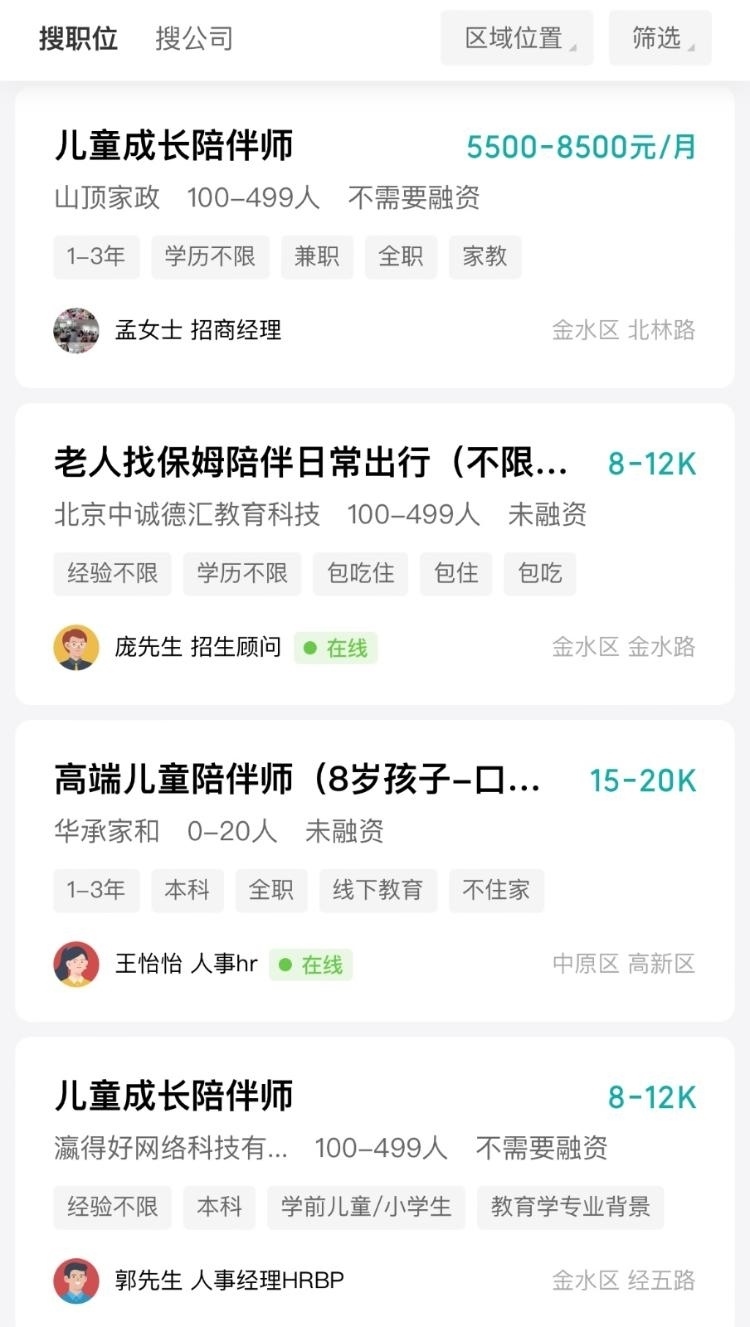 目前,市場(chǎng)上對(duì)于這一新興行業(yè)的需求很旺,甚至有點(diǎn)“供不應(yīng)求”,尤其是在北上廣深、江浙滬、珠三角等經(jīng)濟(jì)發(fā)達(dá)地區(qū)的需求量較大。那么,兒童成長(zhǎng)陪伴師的工作日常是怎樣的?是否真的“錢多事少”?