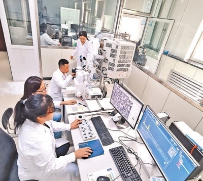 天津淡化所技術(shù)人員在研究反滲透膜技術(shù)。王 劍攝