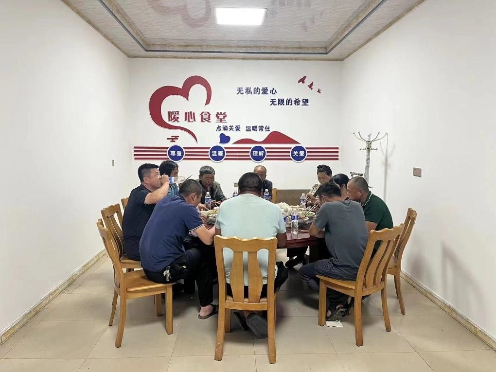 在山東德州陵城區(qū)一家村級“幸福院”,工作了一天的農機手們正在吃晚飯。(受訪者供圖)