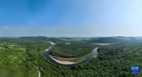 7月2日拍攝的額爾古納市額爾古納國家濕地公園(無人機全景照片)。